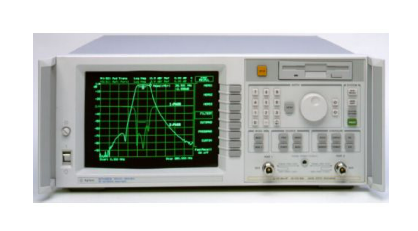 该仪器配备了一个大屏幕9英寸单色显示器,以便清楚地观察测量数据,专用功能键、IBASIC程序和频标。与任何同VGA兼容的彩色监视器相连可以显示合格 /不合格标记和跟踪数据。两个独立的测量通道可以同时显示传输和反射数据。每个通道都可以有独立的测量参数,如频率范围、中频带宽、数据点数和显示格式。显示格式包括驻波比(SWR)、线性幅度和对数幅度、相位和群延迟、史密斯圆图、极座标圆、实数和虚数、dBW、dBm、dBμm、dBV、dBmV、 dBμV。